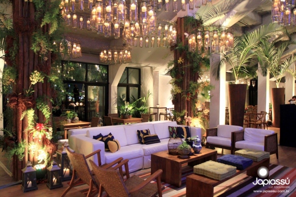 Destaque para os lounges compostos por poltronas e sofás de linhas diferentes, resultando em uma decoração aconchegante e despojada.
