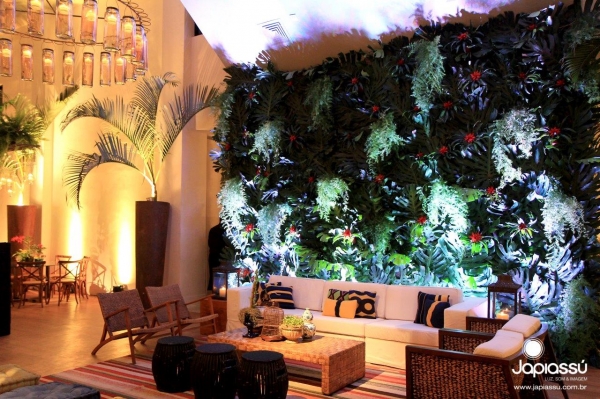 Decoração tropical com presença forte de samambaias e bromélias deram alegria e aconchego a essa comemoração de aniversário. Uma mescla equilibrada e irreverente de mobiliario compôs com elegância a varanda do Joquei Clube do Rio de Janeiro.