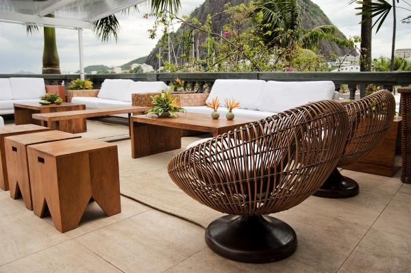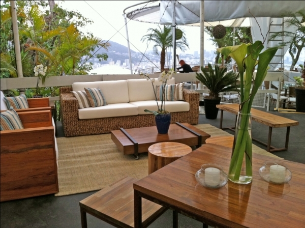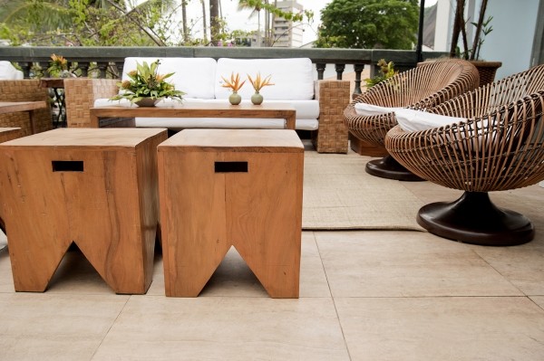 A decoração ganhou um toque arrojado com a combinação de peças da linha de fibra natural Tupari, com madeira de demolição da linha Madero. Destaque para a poltrona Tuim, que traz irreverência e sofisticação à composição do lounge.