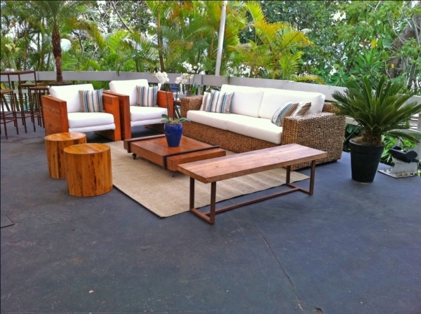 Estrutura em madeira peroba rosa e revestimento em sarja cru.