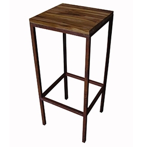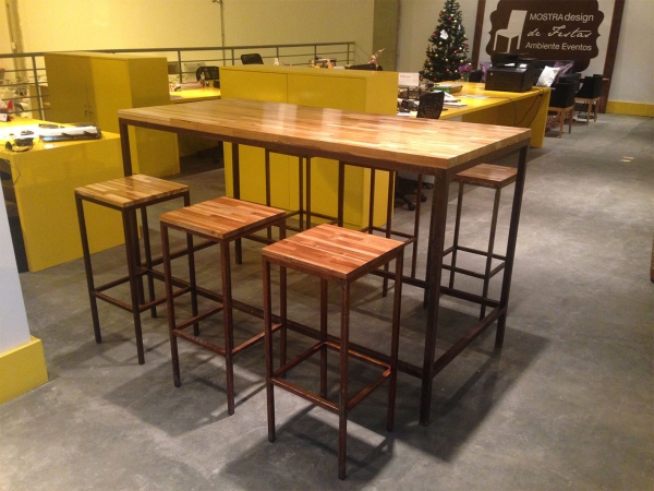Estrutura em metal oxidado e tampo em teca mosaico.
