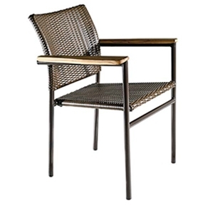 Trama de fibra sintética, estrutura em alumínio e braço em madeira teca. Também pode ser usada em área extena.