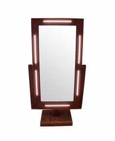 Estrutura e base em madeira de demolição e iluminação com LED.