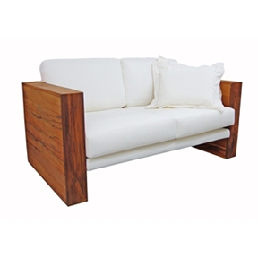Estrutura em peroba rosa, assento e encosto em sarja cru.
