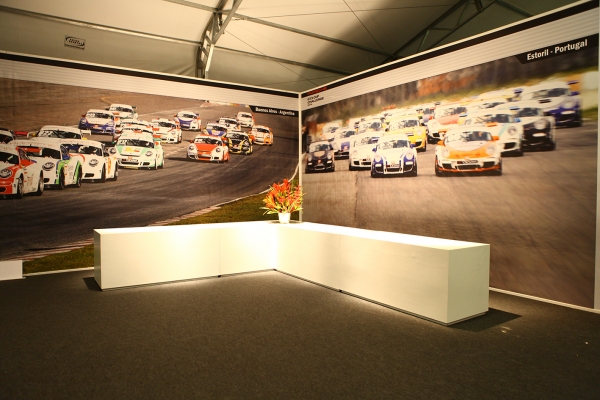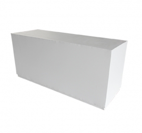 Descripción: Balcão em madeira revestido em corino, com nicho e prateleiras internas para estocagem, fechadas com cortininhas em sarja. Medidas: 2.00 x 0,80 x 1,00h