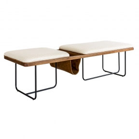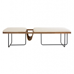Descrição: Ferro, madeira e couro Largura: 1,80m Altura: 0,46m Profundidade: 0,55m