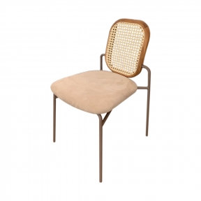 Descrição: Madeira / Palha; Tecido: Suede Champanhe Medidas em metro: 0,40L X 0,51P X 0,79A
