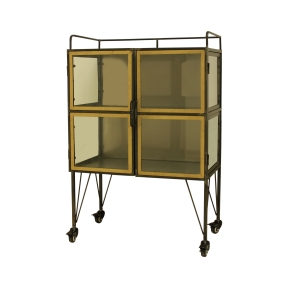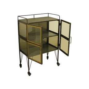 Descrição: Cristaleira de ferro e vidro com rodízio. Medidas em metro: 0,70L x 0,41P x 1,06A