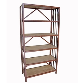 Estrutura de madeira apuí e prateleiras com trama de junco.