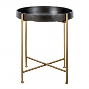 Descrição: Mesa lateral ferro dourada e preta alta. Diâmetro: 0,45m Altura: 0,56m