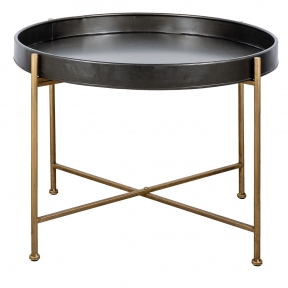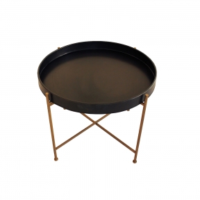 Descrição: Mesa lateral ferro dourada e preta baixa. Diâmetro: 0,57m Altura: 0,46 m