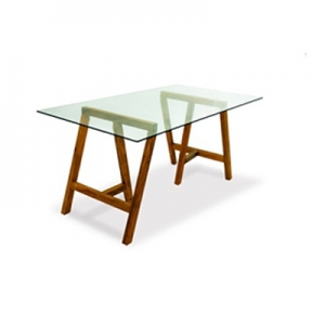 Tampo em vidro translúcido de 15 mm e cavalete em madeira peroba de demolição.
