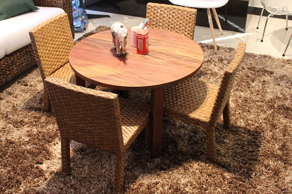 Mesa infantil com tampo e estrutura em peroba de demolição.