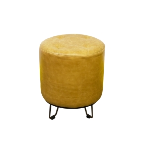 Descrição: Couro e ferro Diâmetro: 0,41 m Altura: 0,46 m