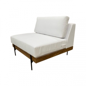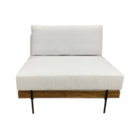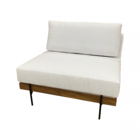 Descrição: Madeira; Linho Cru; pés em ferro. Largura: 1,00 m Altura: 0,78 m Profundidade: 0,90 m