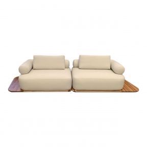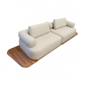 Descrição: Linho Cru e Madeira Medidas em metro: 3.70l x 0.90a x 1.00p